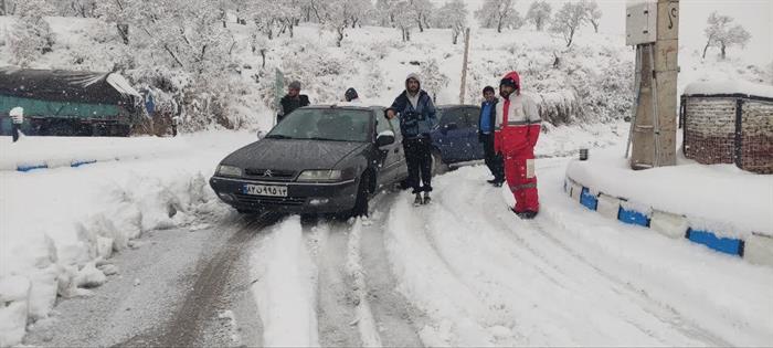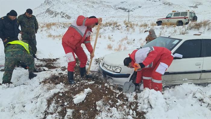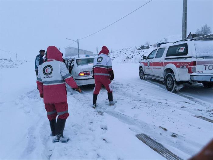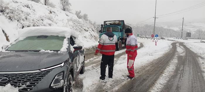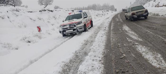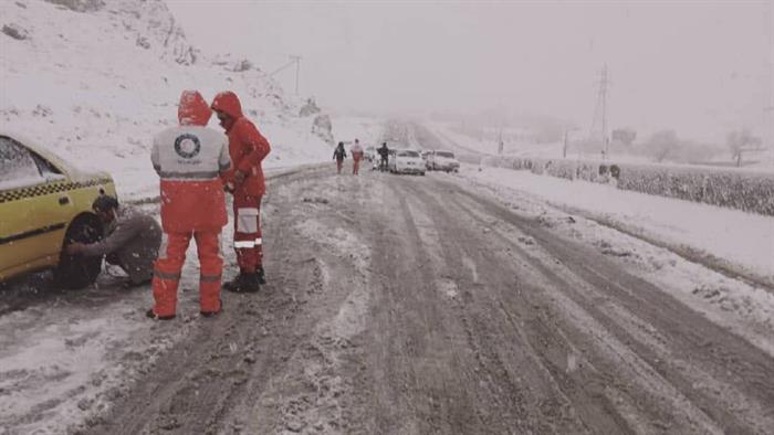 امدادرسانی شبانهروزی نجاتگران هلالاحمر در محورهای کوهستانی و برفگیر