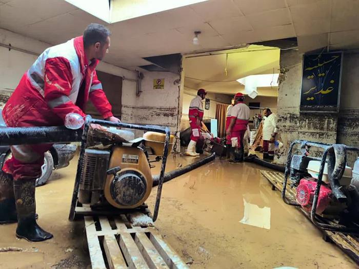امدادرسانی نیروهای عملیاتی هلالاحمر فارس به حادثهدیدگان در پی بارشهای اخیر و وقوع سیلاب و آبگرفتگی در جهرم