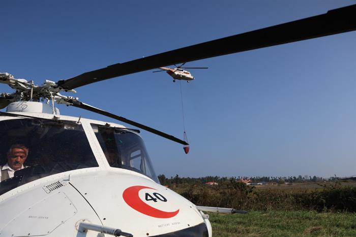 مشارکت بالگرد جمعیت هلال احمر در اطفای حریق جنگلهای الیت