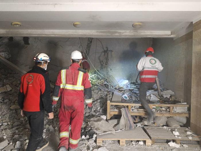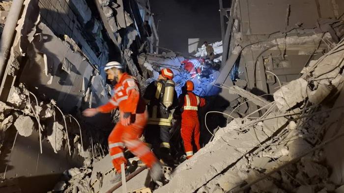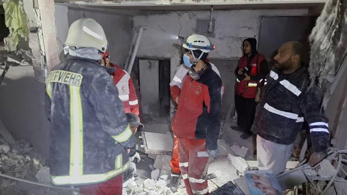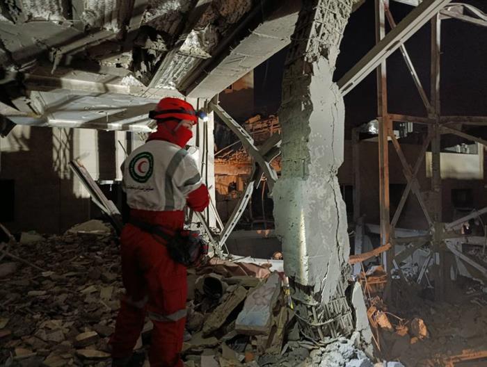 امدادرسانی تیمهای عملیاتی هلالاحمر در منطقه مسکونی در قم که مورد هدف حمله هوایی رژیم صهیونیستی آمریکایی قرار گرفته است