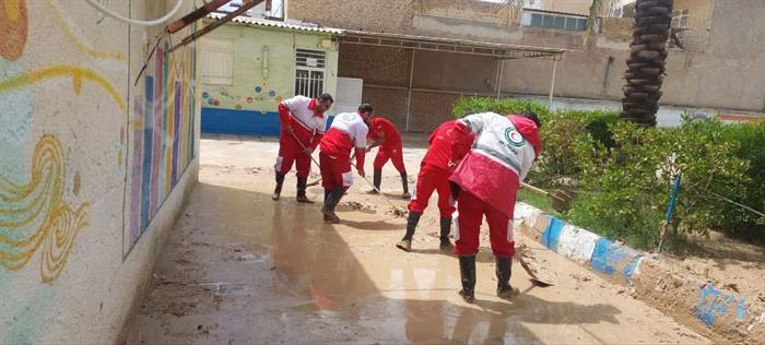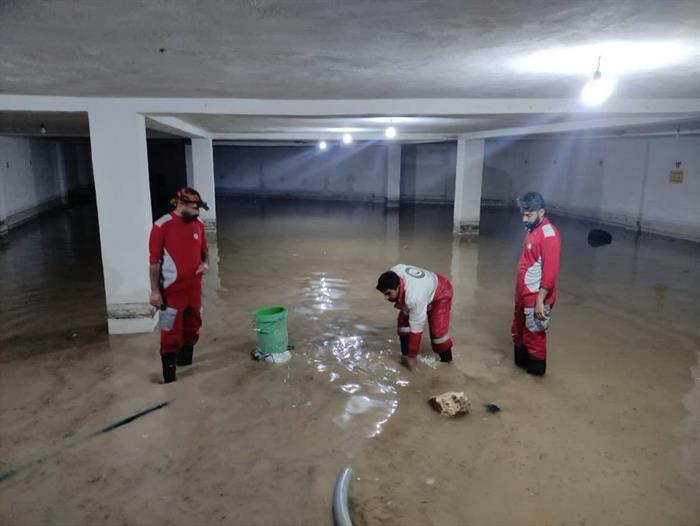 امدادرسانی نیروهای عملیاتی هلالاحمر فارس به حادثهدیدگان در پی بارشهای اخیر و وقوع سیلاب و آبگرفتگی در جهرم