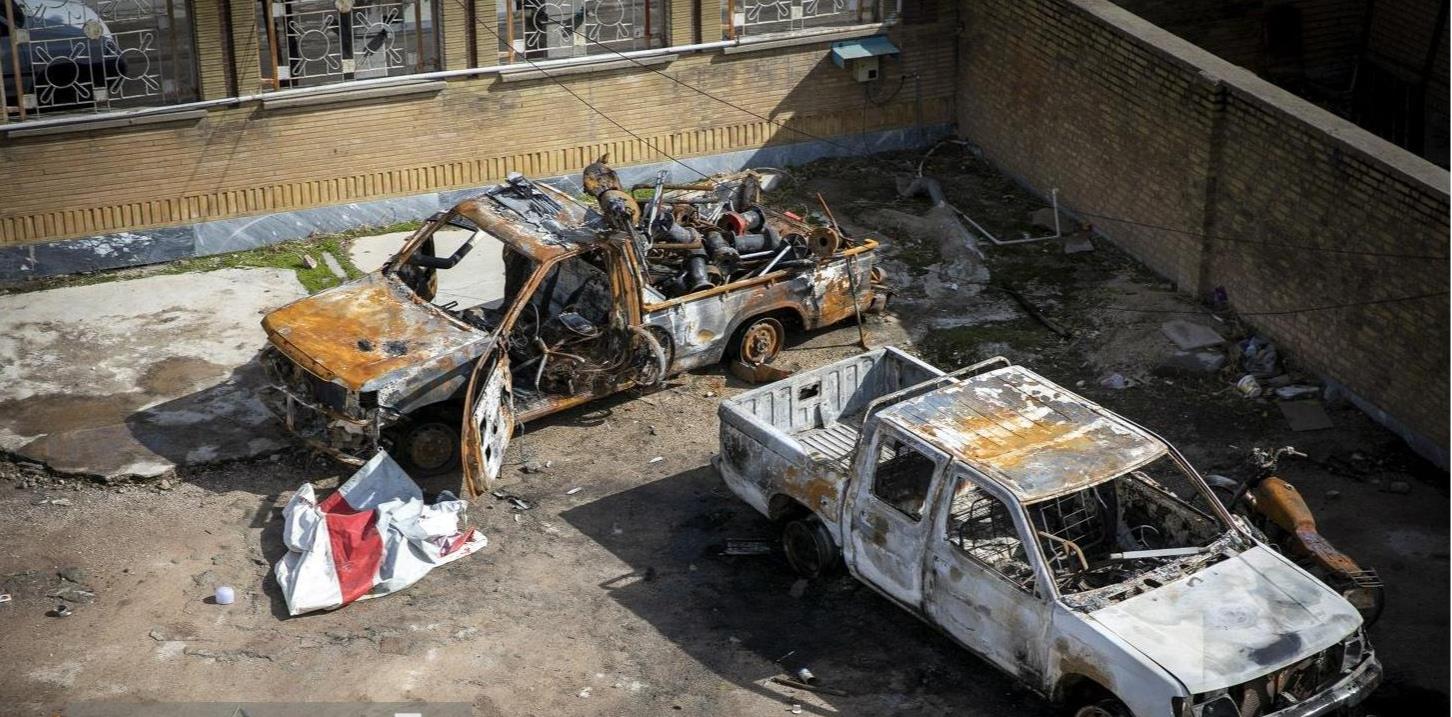 تروریست ها انبار اسکان اضطراری و انبار مواد غذایی هلال احمر را به آتش کشیدند,