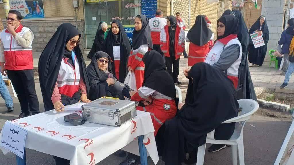 ارائه خدمات امدادی تیم های عملیاتی هلال احمر در مسیر راهپیمایی ۲۲ بهمن انجام شد.