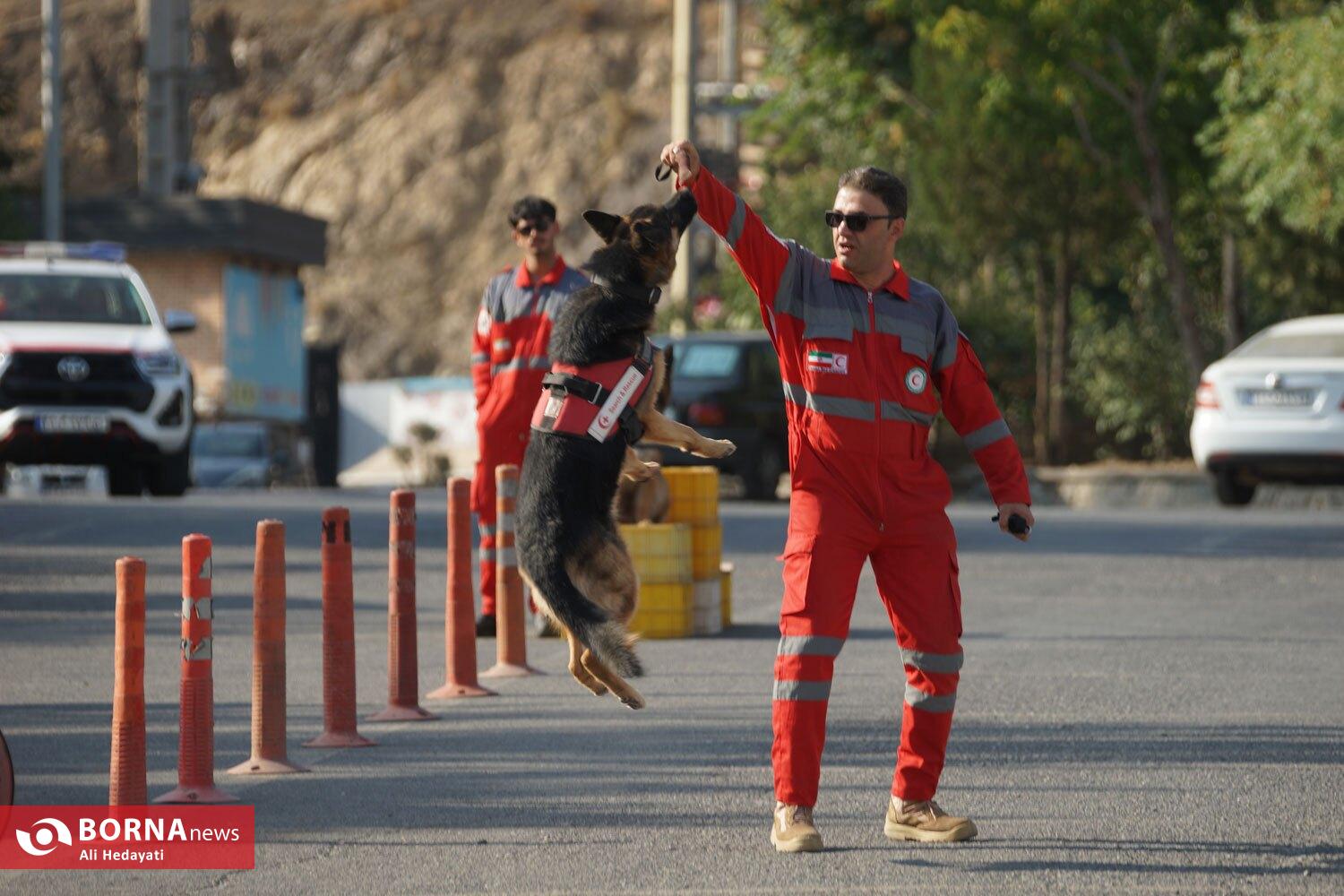 مانور سگهای زندهیاب هلالاحمر در توچال تهران