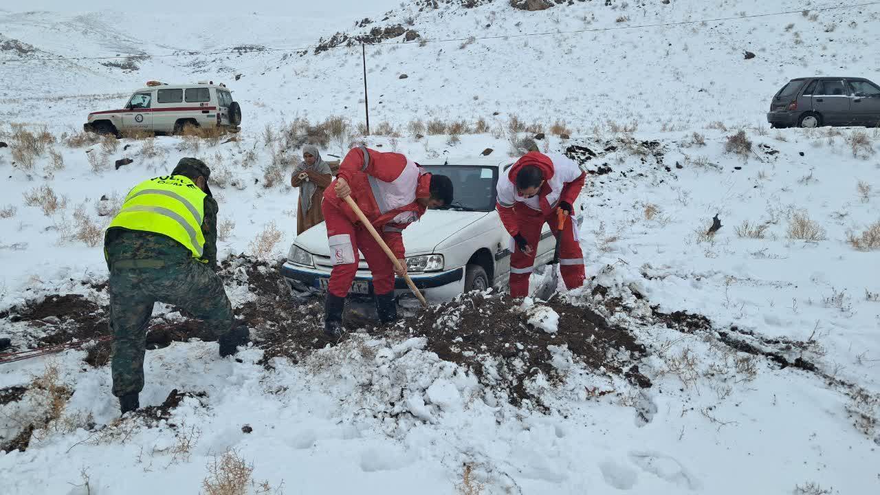 امدادرسانی شبانهروزی نجاتگران هلالاحمر در محورهای کوهستانی و برفگیر