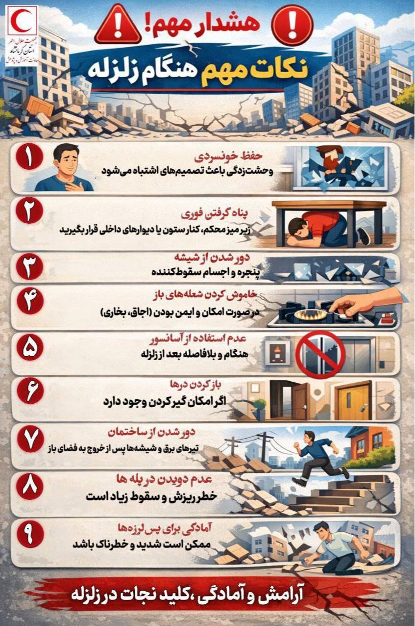 به گزارش پایگاه اطلاع‌رسانی جمعیت هلال احمر؛ آمادگی در برابر زلزله، از آموزش‌های ساده تا برنامه‌ریزی خانوادگی و مقاوم‌سازی ساختمان‌ها، نقش مهمی در کاهش تلفات و خسارات دارد و تفاوت میان بحرانی کنترل‌شده و فاجعه‌ای جبران‌ناپذیر را رقم می‌زند.