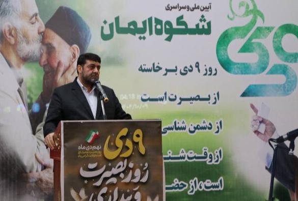وی با بیان اینکه ۹ دی روز برافروخته شدن خورشید بصیرت در آسمان تاریخ بود، مطرح کرد: این روز غبار فتنه را کنار زد و حقیقت را در دل‌ها روشن کرد و پیام داد که اگر ملت ایران احساس کند دین، هویت و آینده‌اش در خطر است، چون سیلی خروشان برمی‌خیزد و همه نقشه‌های دشمن را در هم می‌ریزد.