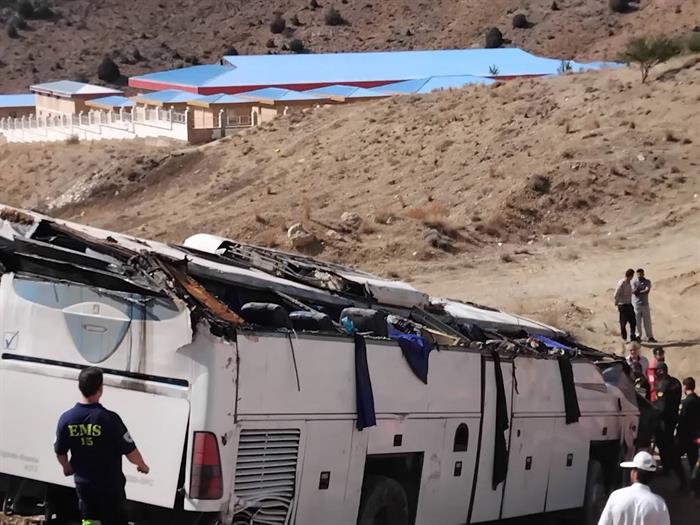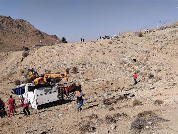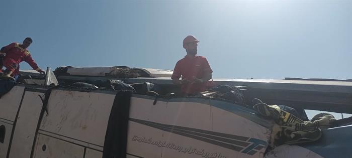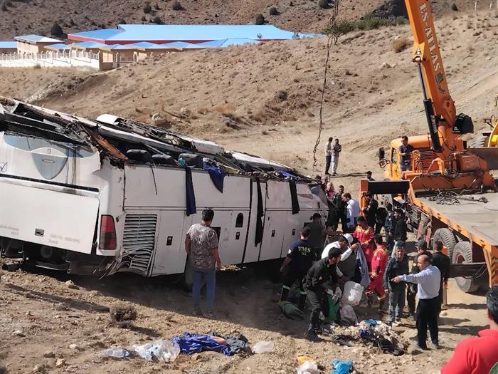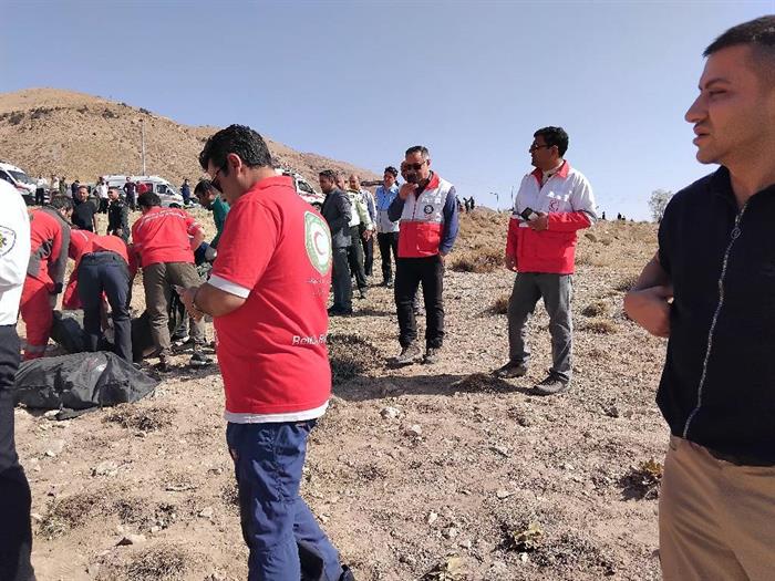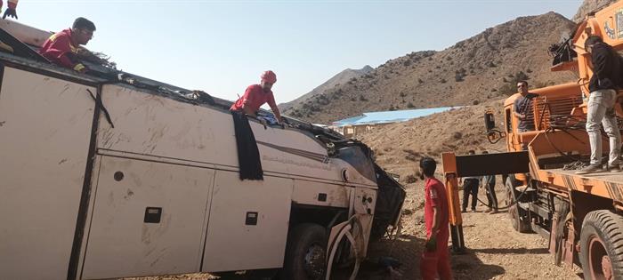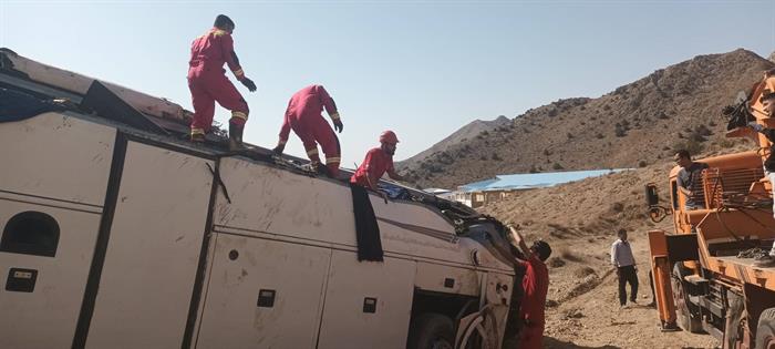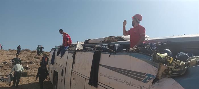 امدادرسانی تیمهای عملیاتی هلالاحمر در حادثه واژگونی اتوبوس در محور فیروزکوه_امینآباد