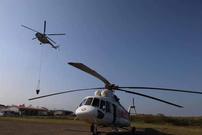 مشارکت بالگرد جمعیت هلال احمر در اطفای حریق جنگلهای الیت