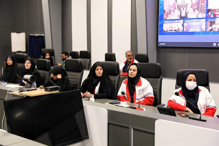 حضور حجتالاسلام خسروپناه، دبیر شورای عالی انقلاب فرهنگی در ستاد مرکزی مدیریت شرایط اضطراری جمعیت هلالاحمر