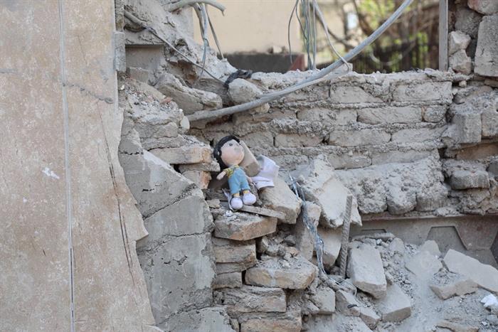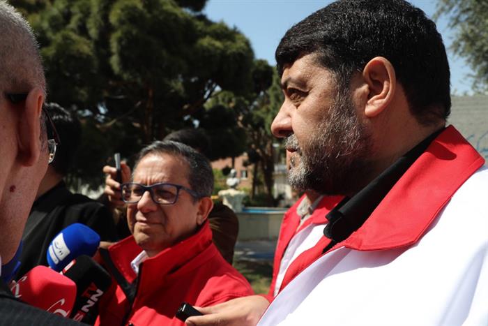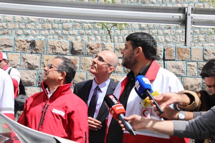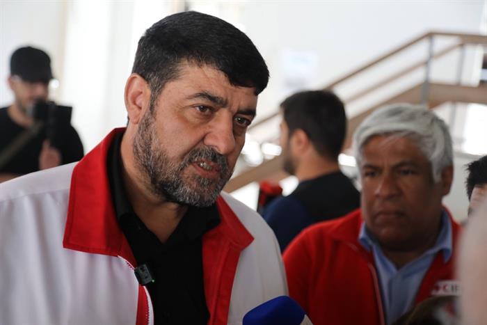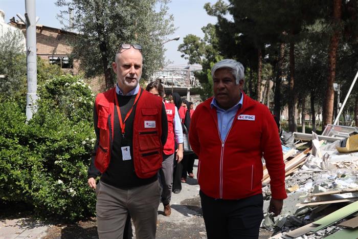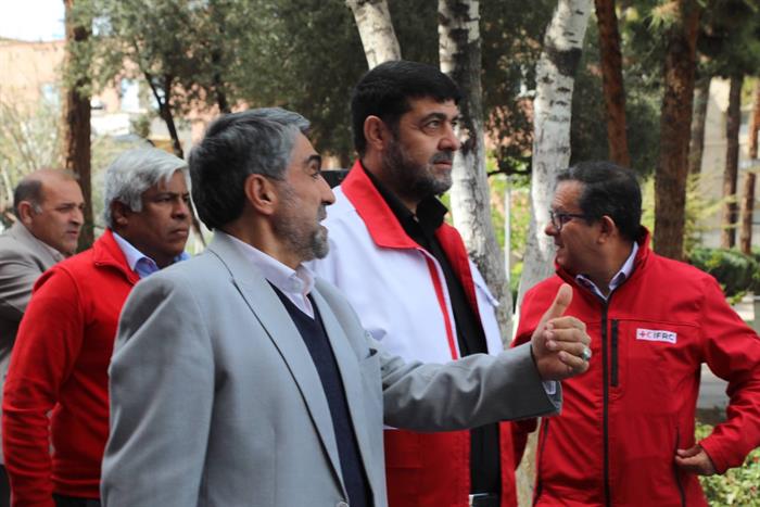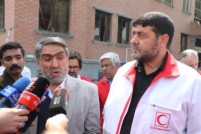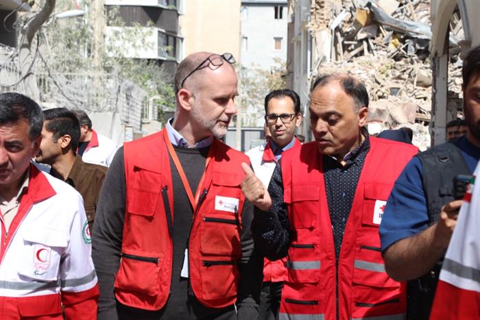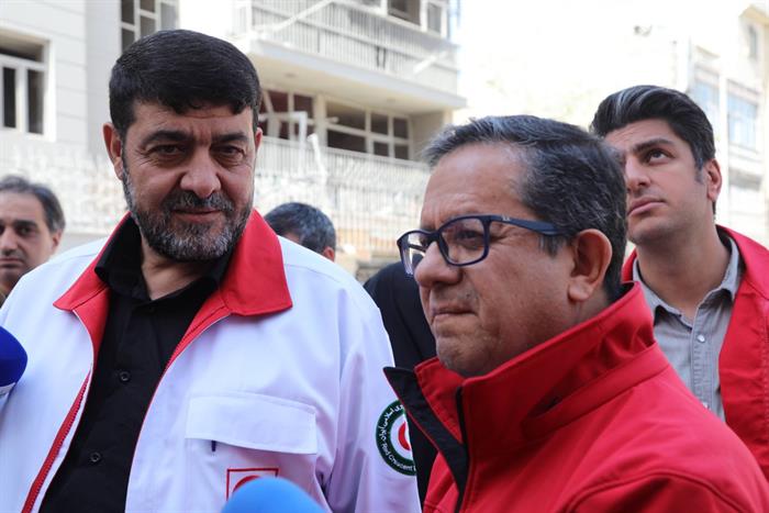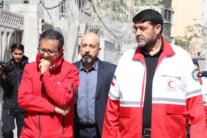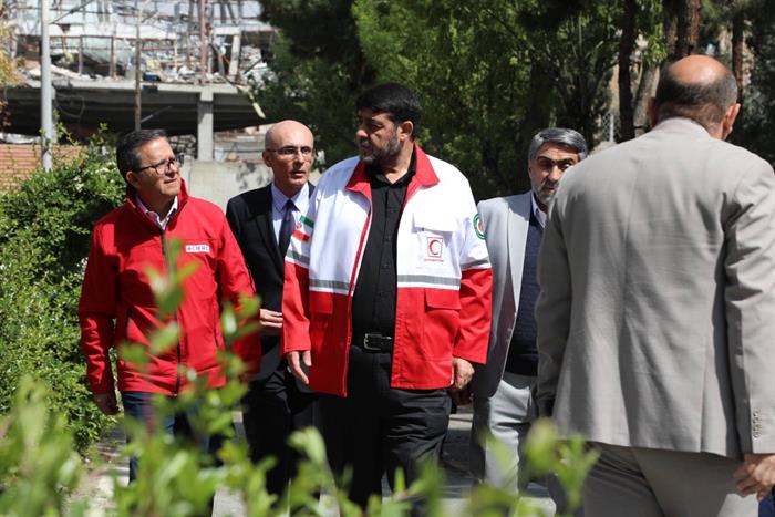 بازدید نمایندگان صلیب سرخ به همراه رئیس جمعیت هلال احمر از مناطق غیرنظامی هدف حمله در جنگ تحمیلی سوم